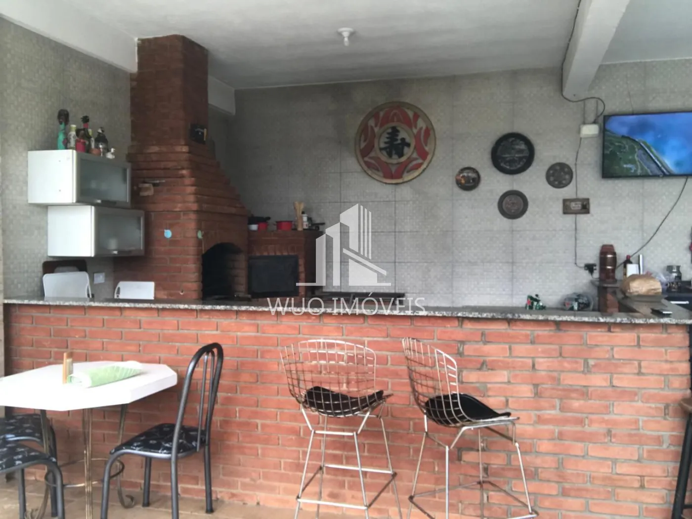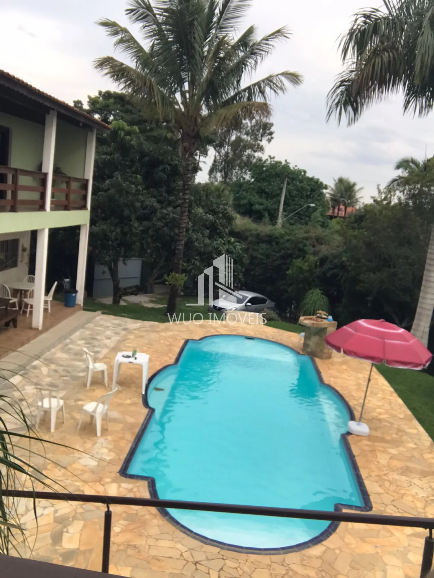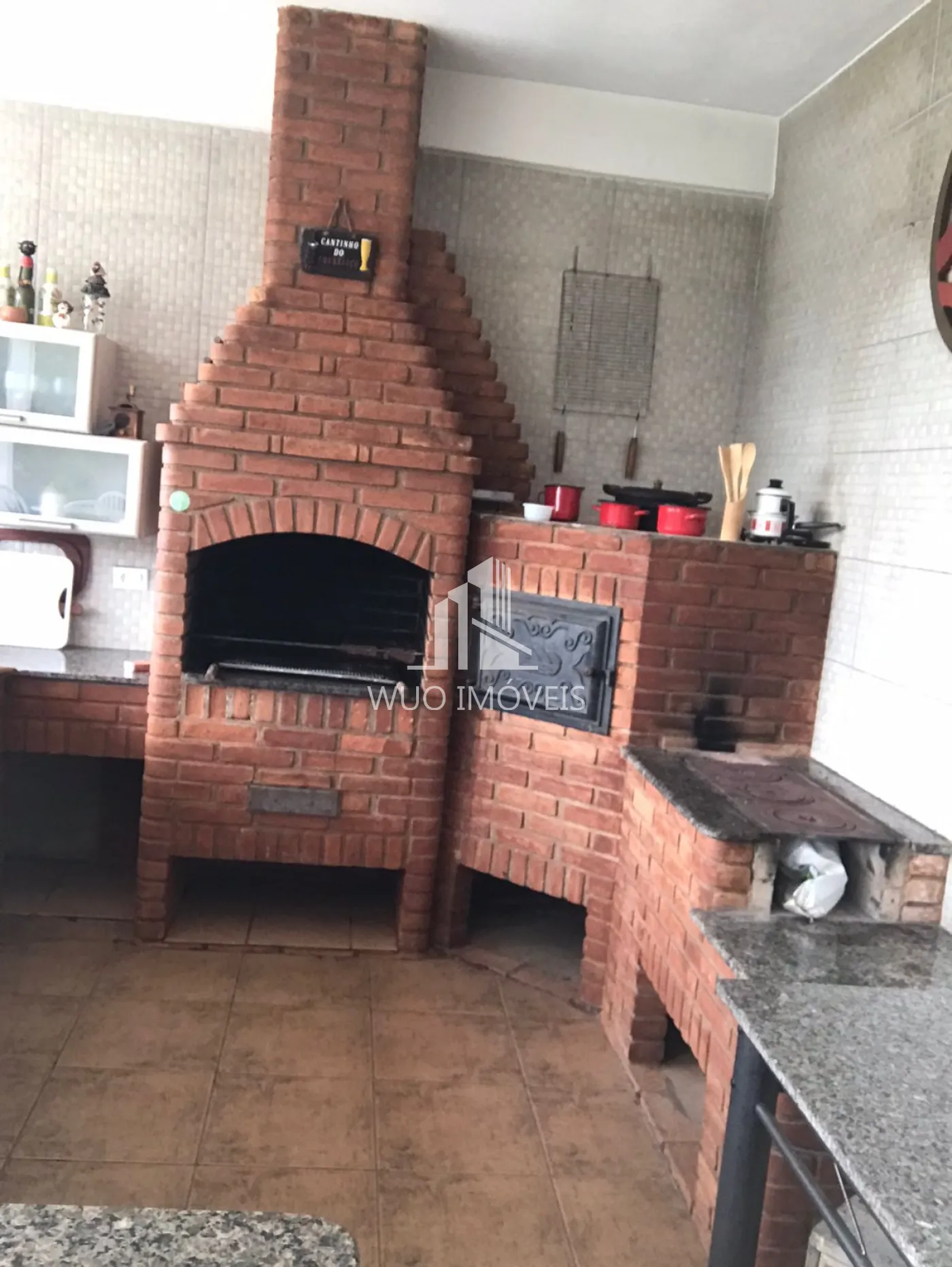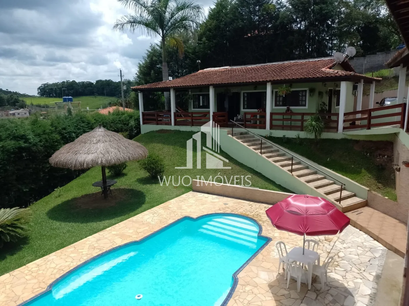 A casa conta também com 3 dormitórios de hóspedes, com acesso independente. Uma área gourmet completa, com churrasqueira, fogão a lenha, piscina e um quiosque na beira da piscina.