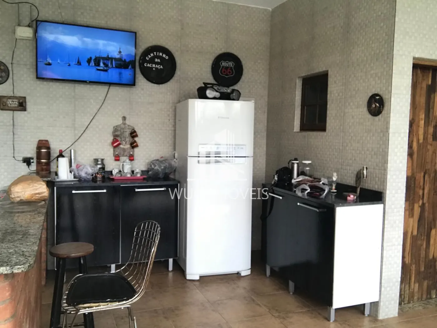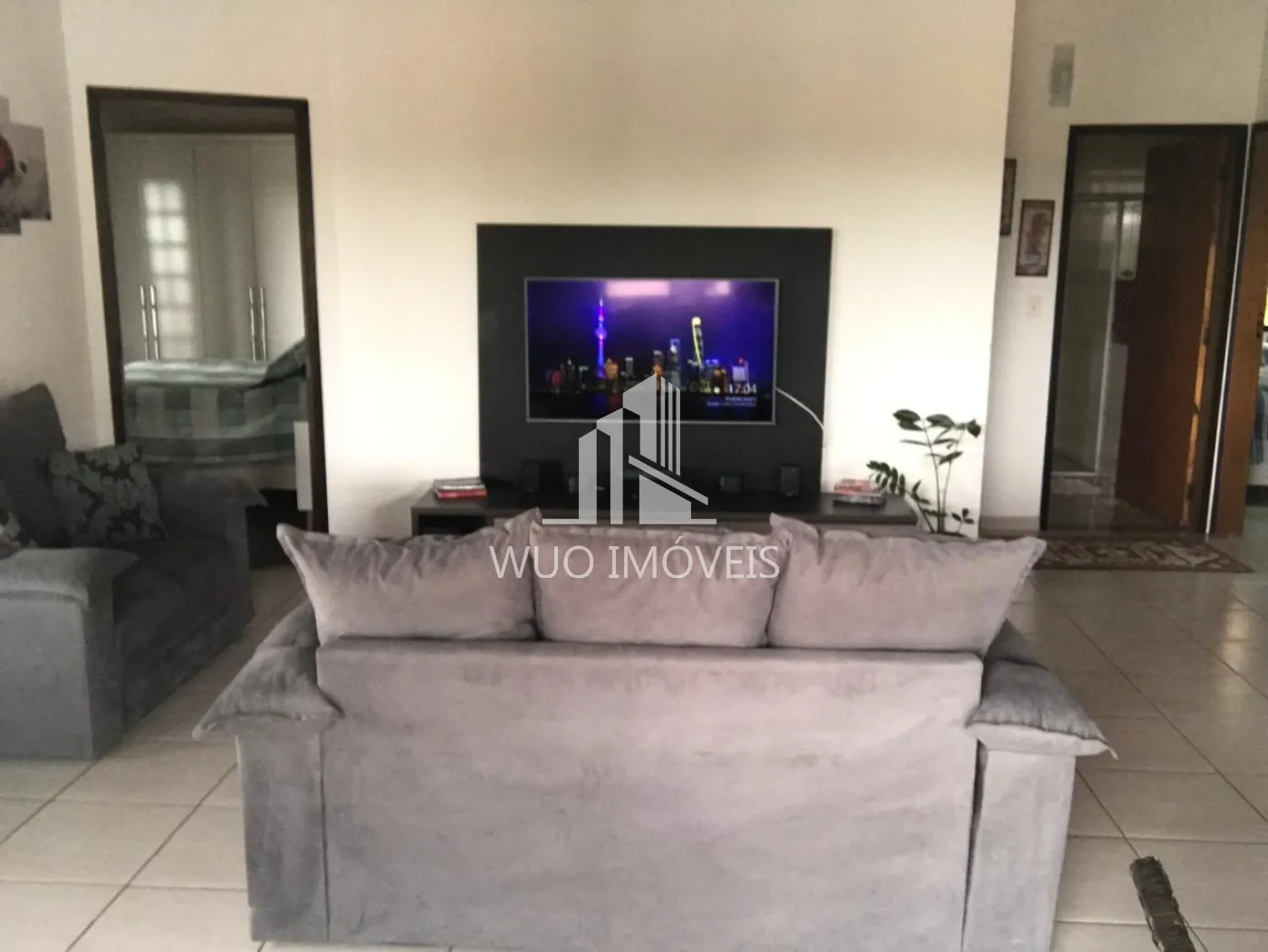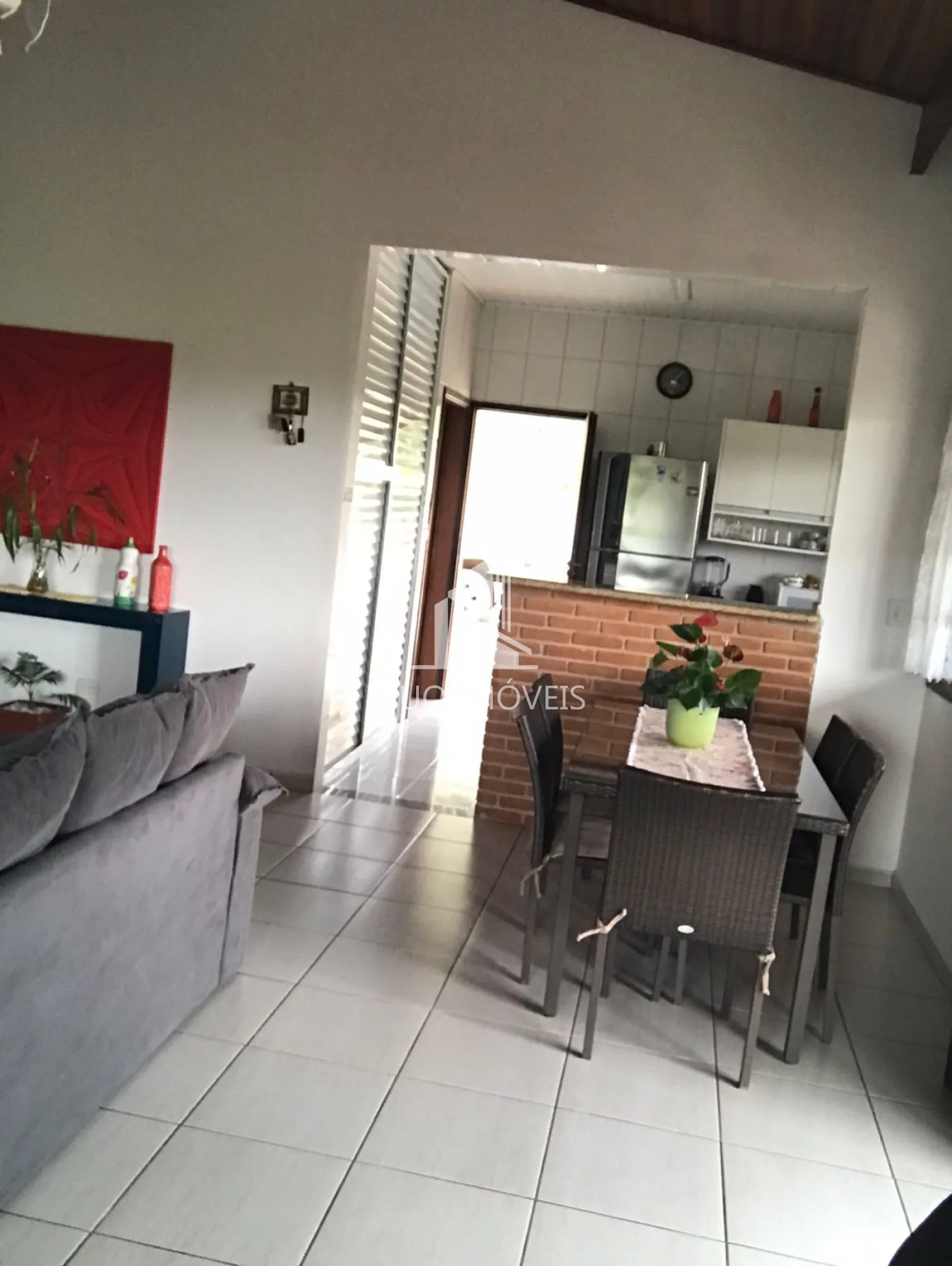 casa principal com 3 dormitórios, sendo 1 suíte, uma sala ampla integrada com a cozinha com pé direito alta, bem iluminada.