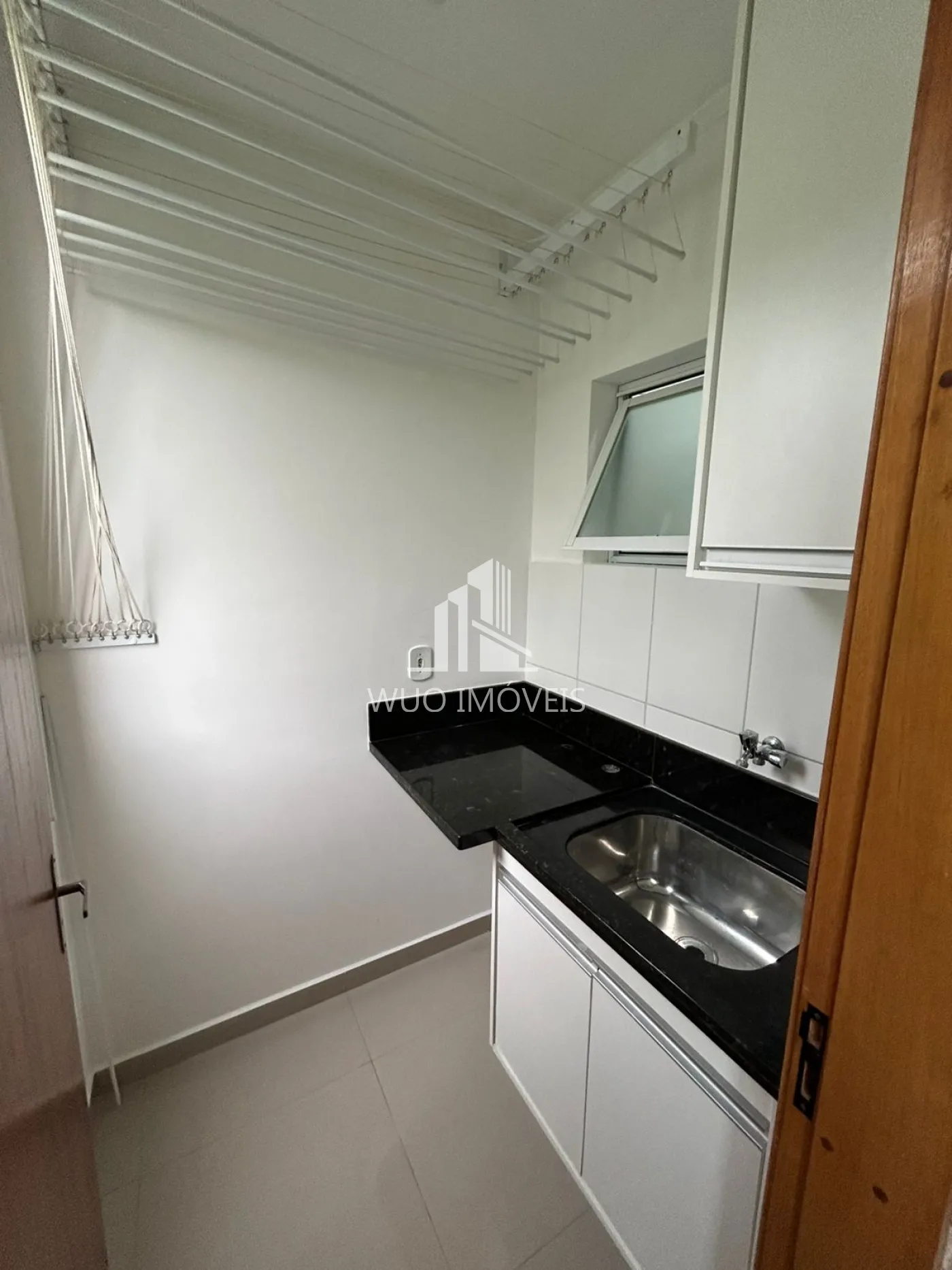 Cortina blackout, 2 varões de cortina nos quartos e varal na lavanderia.