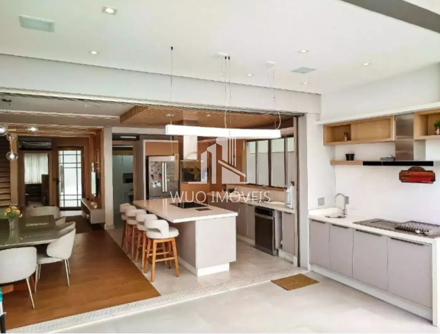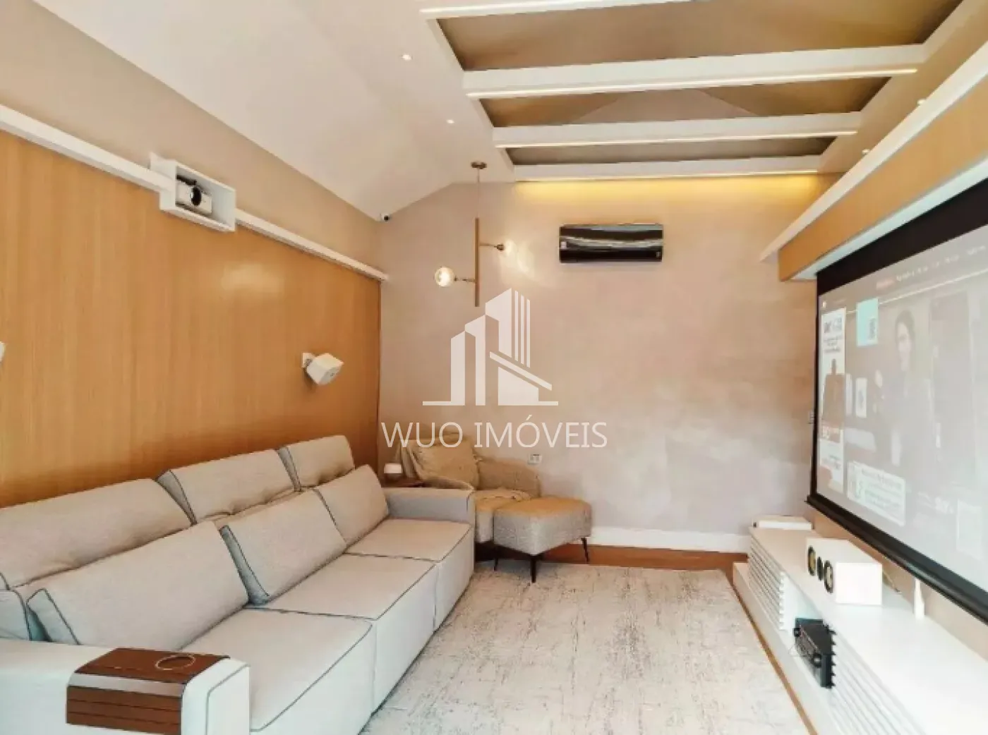 Ambientes amplos e integrados, com sala de estar, jantar e cozinha em conceito aberto padrão americano. Sala de TV equipada com home theater e projetor. Escritório completo e funcional, além de um espaço exclusivo na entrada com sapateira planejada.
