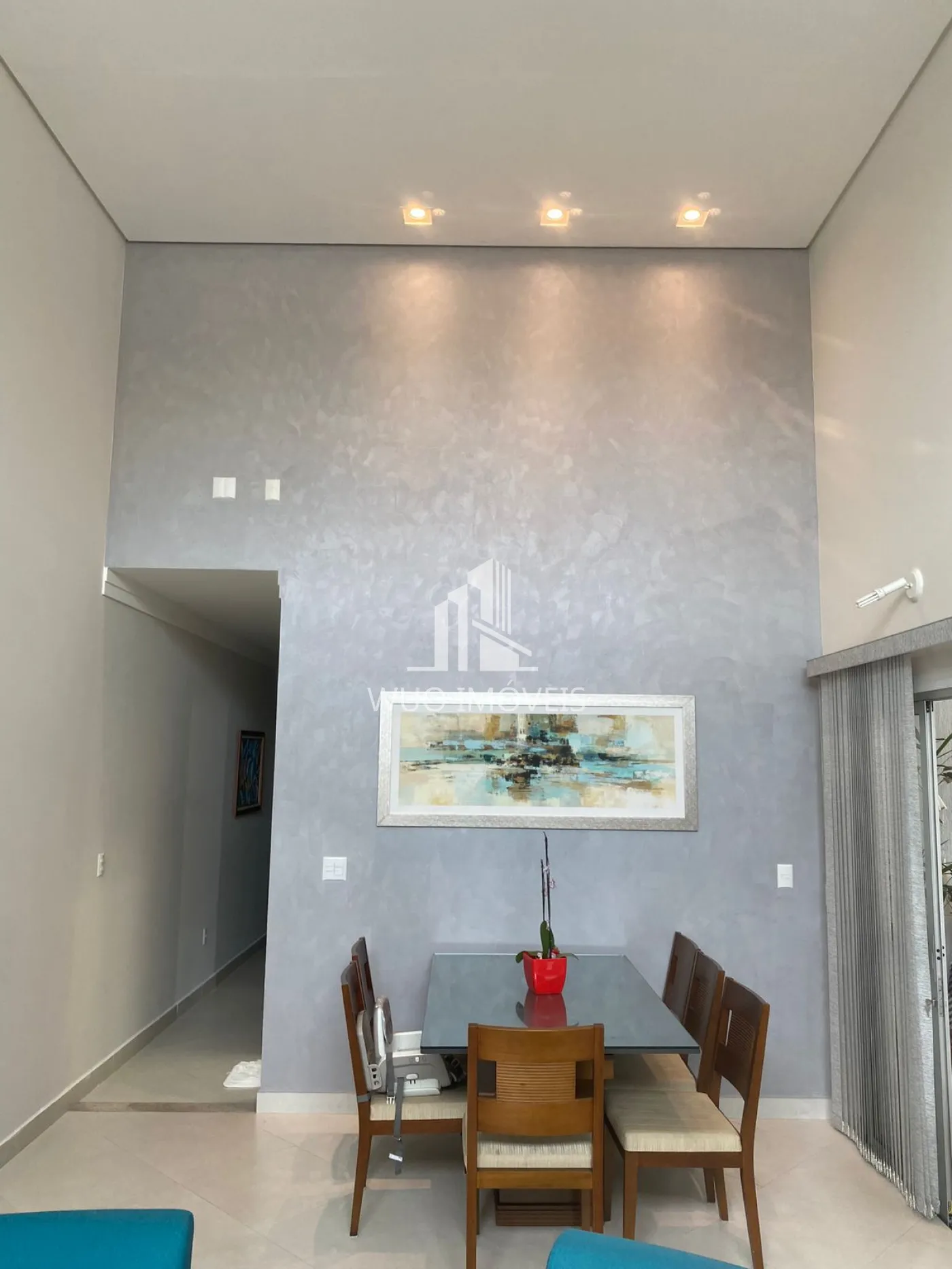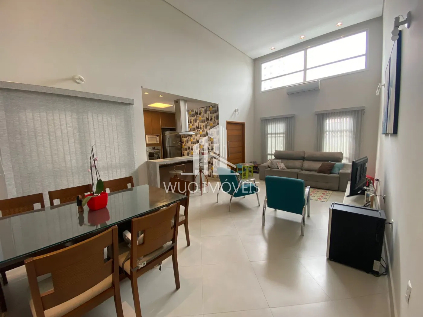 3 dorm (1 suite), banheiro, lavabo, cozinha integrada, lavanderia fechada, pé direito duplo, janelas alumínio.