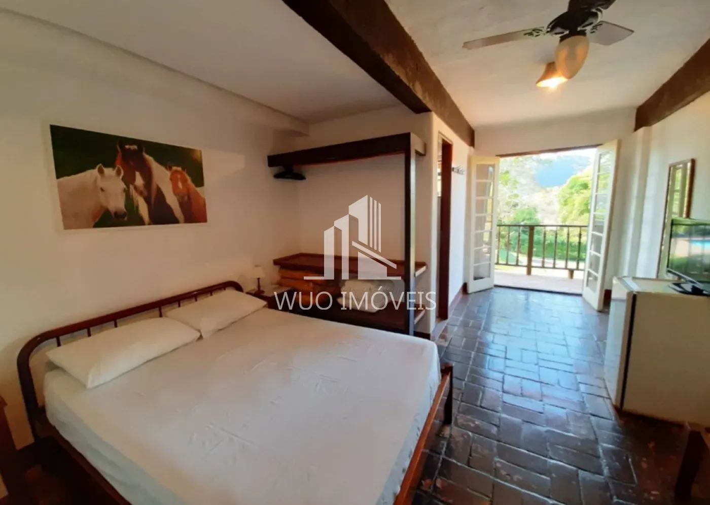 Baia para 30 cavalos, sendo 8 estabulados (baia fechada) e sala de arreios;