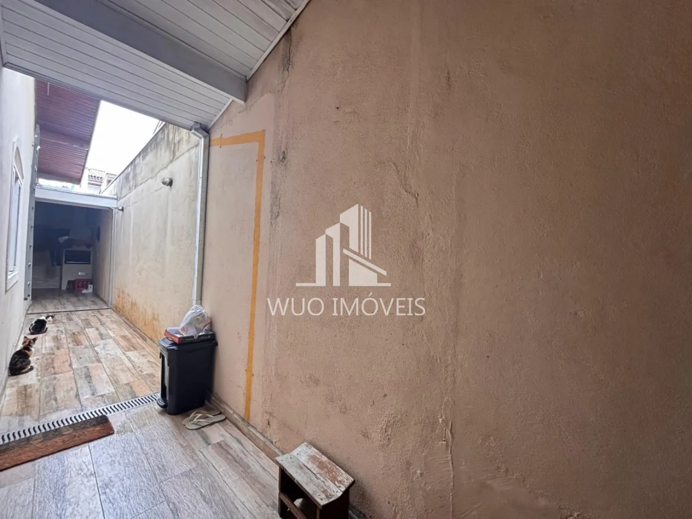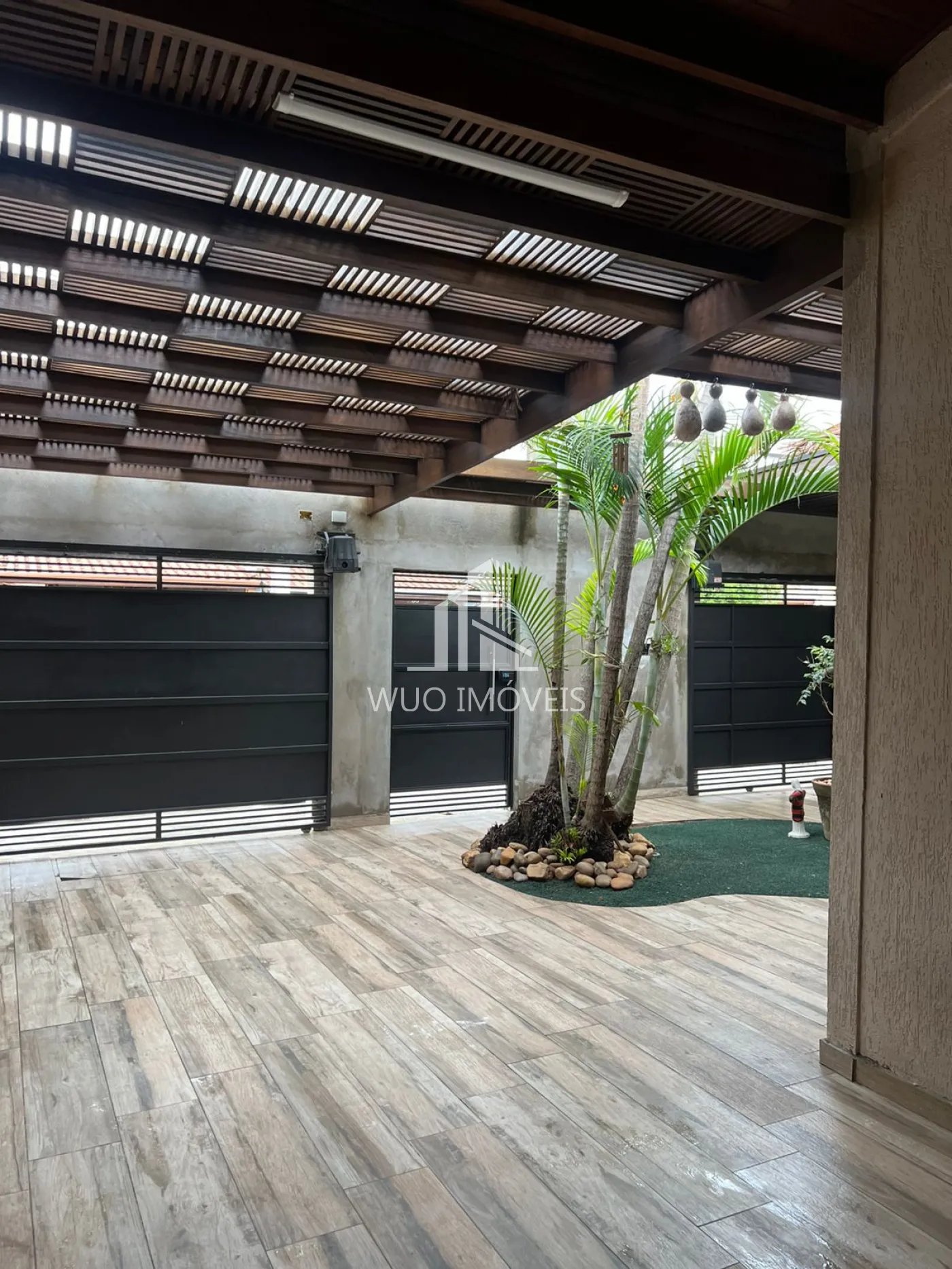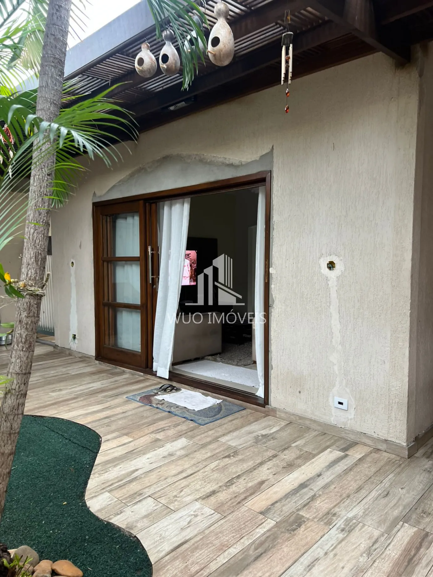 Área externa com pisos trocados há menos de 1 ano, em porcelanato que imita tábuas de madeira
