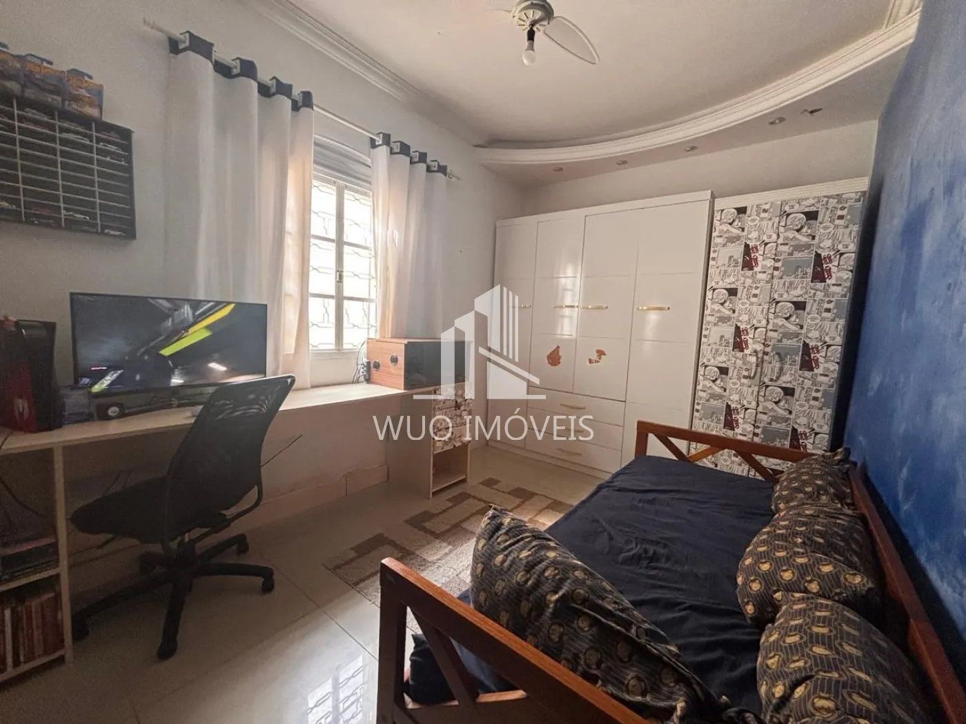 3 quartos, sendo 1 suíte com hidromassagem.